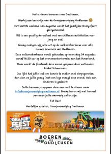 Nieuwe inwoners van Oudleusen: opgelet! door admin | aug 14, 2022 | Plaatselijk Belang Bericht voor alle nieuwe inwoners van Oudleusen: Ben je in 2019 of daarna in Oudleusen komen wonen? En heb je zin in een gezellige barbecue? Geef je dan op!! Dat kan door een mail te sturen naar: info@oranjevereniging-oudleusen.nl